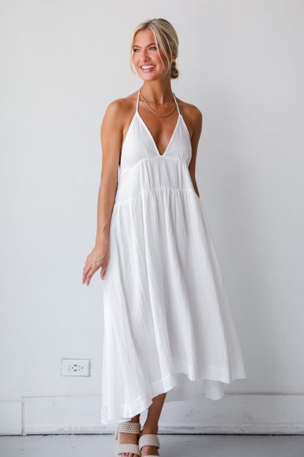 Memorable Entrance White Linen Halter Midi Dress $424.00